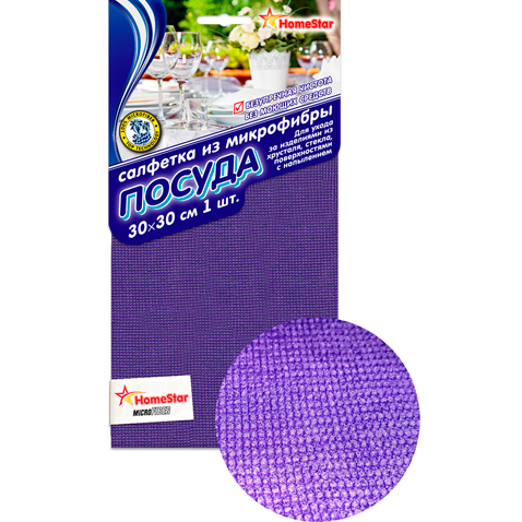 Салфетка из микрофибры ТМ HomeStar для посуды деликатно и бережно ухаживает за стеклянными и фарфоровыми изделиями с напылением и без.