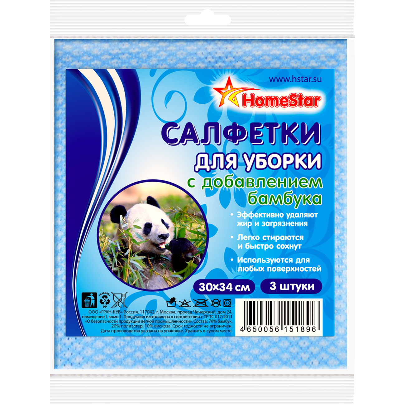 Салфетки для уборки с добавлением бамбука HomeStar, 30×34 см, 3 штуки