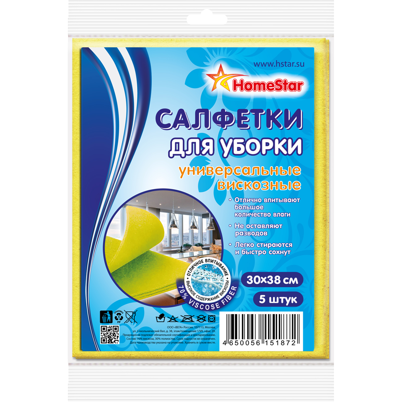 Салфетки вискозные универсальные HomeStar, 30×38 см, 5 штук